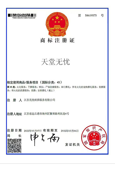 天堂无忧殡葬服务,成立于2021年。位于江苏省连云港市海州区繁荣路利民巷6号(原旅游学校), 天堂无忧殡葬服务是城乡资源整合尝试者、移风易俗先行者。全产业链生命关怀服务提供商,致力于为逝者提供专业化、人性化,个性化的生命终端服务机构。